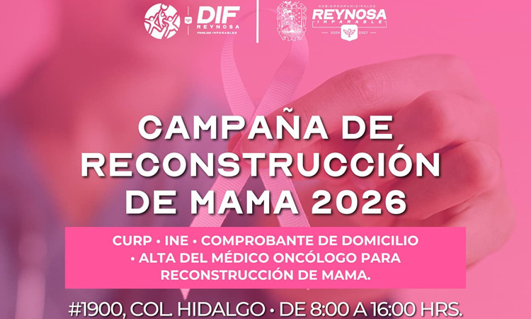 * Invita DIF-Reynosa a registrarse. Por Redacción | Enlace Digital Reynosa, Tam.- El Sistema DIF-Reynosa que preside Carlos Luis Peña Garza, mantiene abierta la Campaña de Reconstrucción de Mama 2026, con el objetivo